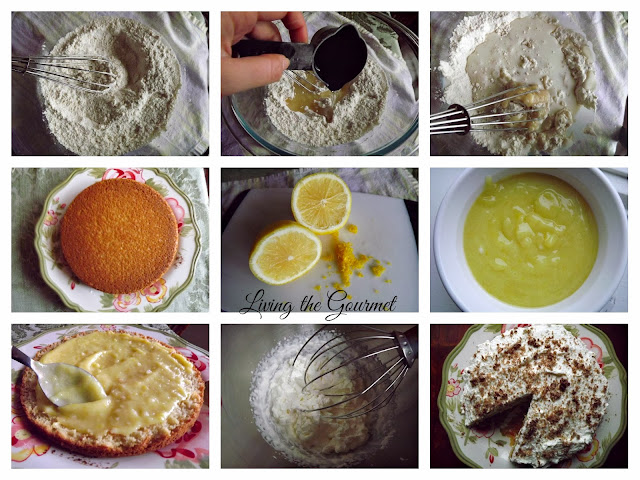 This cake is a three part process but it moves along rather quickly. I started with an eggless cake base, layered with a refreshing lemon custard, and finally, I topped it all off with fresh whipped cream.