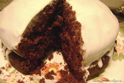 The cake's texture looks great and the icing as well. Sounds tasty!