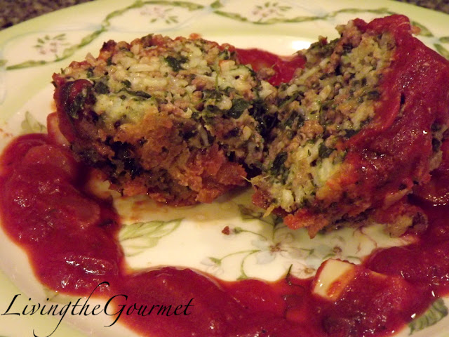 Beat three of the four eggs and add to the spinach and ground beef. Add the cooked rice, grated Romano cheese, shredded mozzarella and all of the seasonings and mix well.