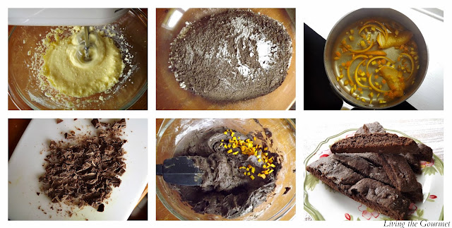 Today, I have prepared my own take on Eric's Chocolate and Pistachio Biscotti. Since I did not have pistachios on hand, I substituted them with sweetened orange rind. The result was nothing short of wonderful- as expected.