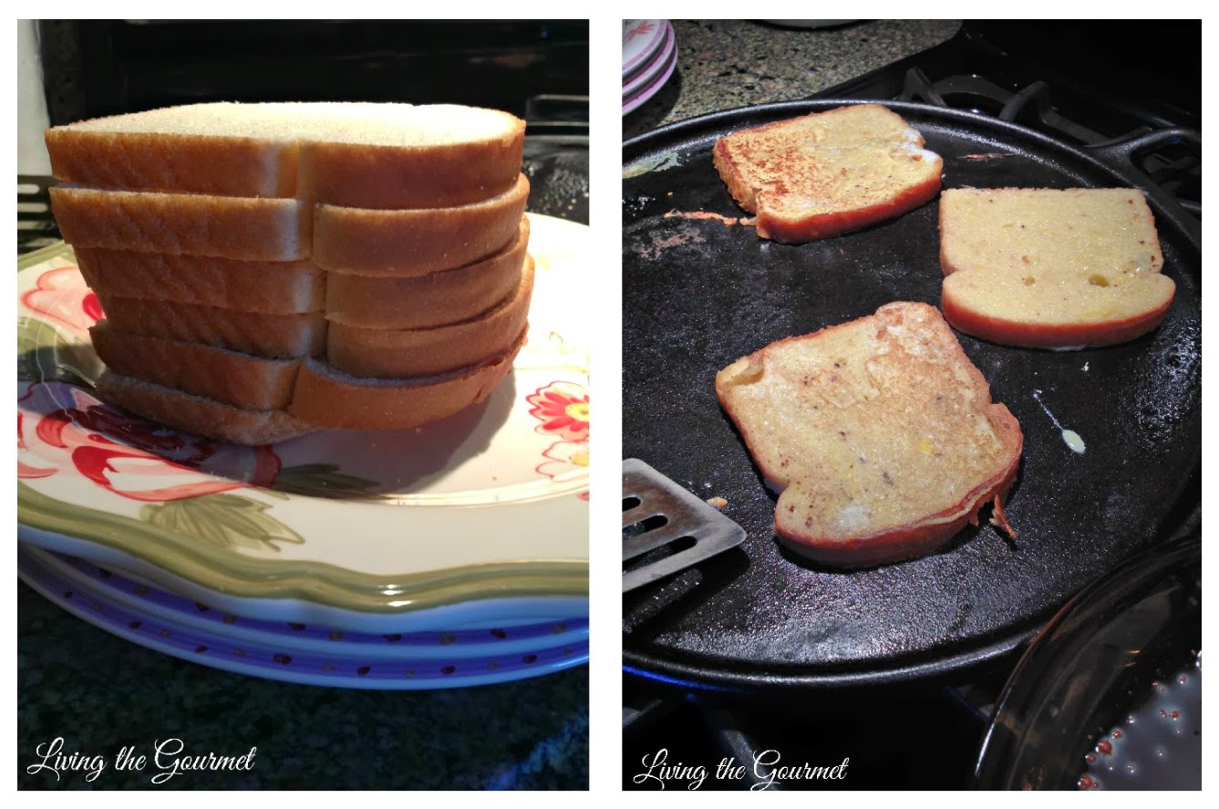 Dip the bread in the wash on both sides and place on a griddle. Do not soak the bread or it will fall apart.