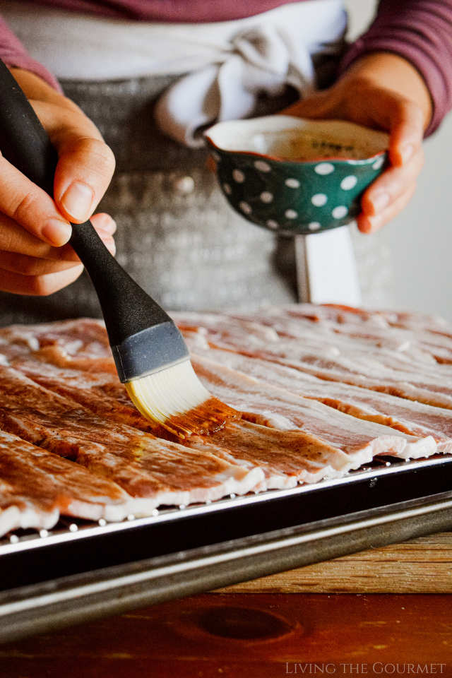 - In a small bowl, whisk together maple syrup, vanilla, cloves, and vanilla. Brush both sides of the bacon and bake for 20-25 minutes or until deeply browned and crispy.