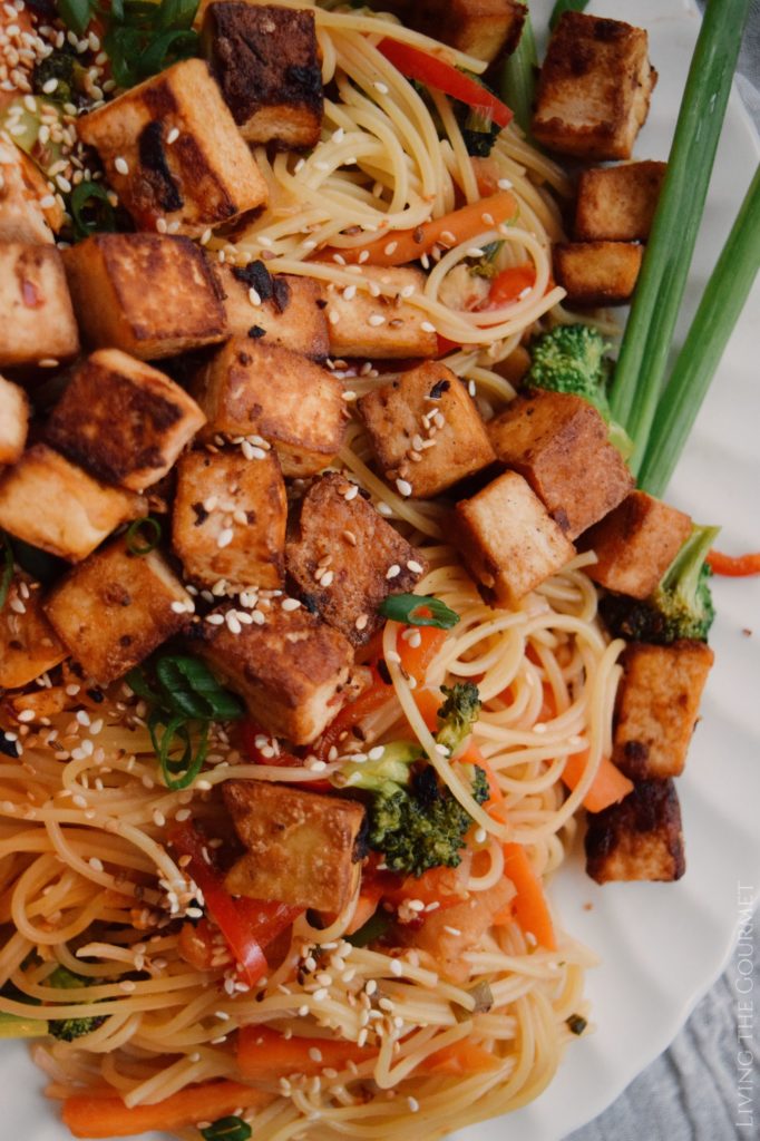 - Honey Garlic Tofu and Noodles - Tofu is a perfect canvas for flavor. There are a million ways to serve and enjoy this versatile ingredient. One of my favorites is this honey garlic marinated recipe. Serve with noodles or rice, or even a bowl of soup!