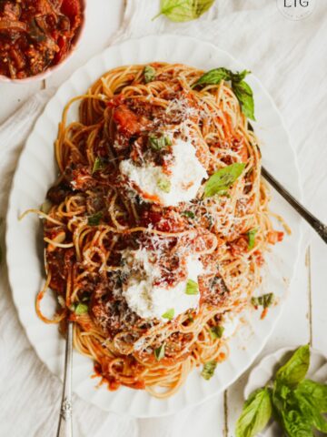 Eggplant and Tomato Pasta with Whipped Ricotta